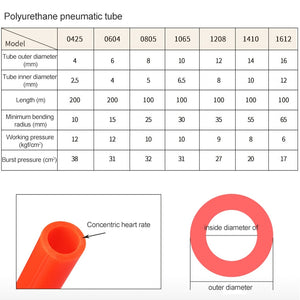 LAIZE Pneumatic Compressor Air Flexible PU Tube, 4x2.5mm, 160m, 4x2.5mm, 180m, 4x2.5mm, 200m, 6x4mm, 160m, 6x4mm, 180m, 6x4mm, 200m